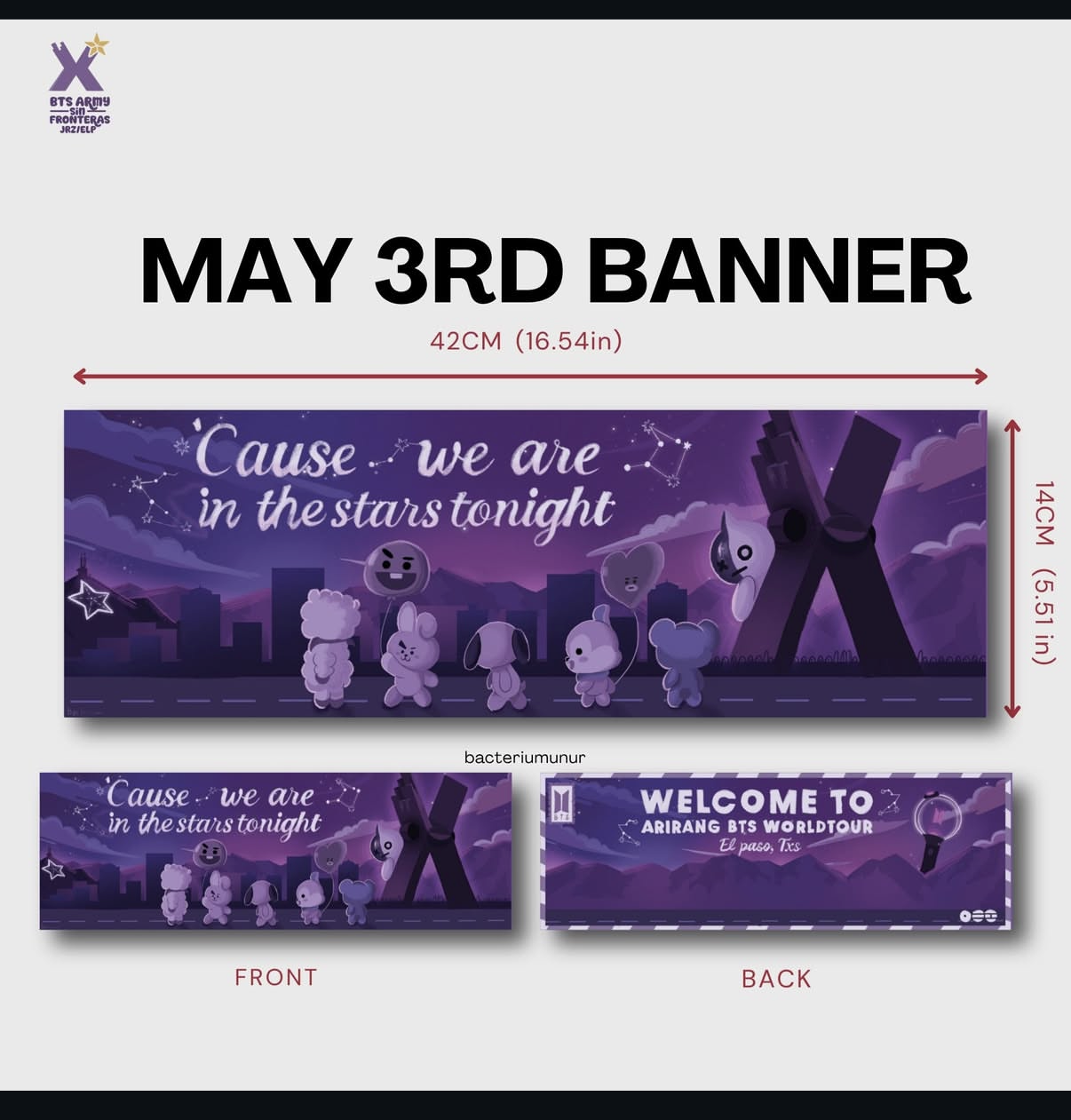 BACK - Reflects our shared identity in ARMY bombs with icons from each city.