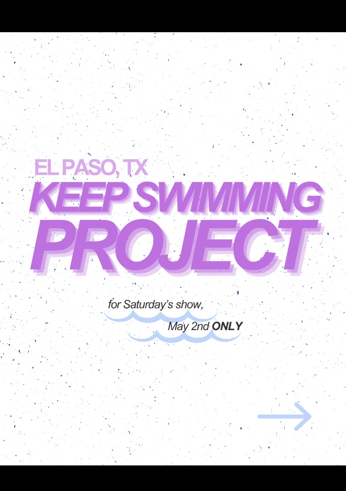 Bring a purple whale sign with "KEEP SWIMMING" written in marker - DAY ONE ONLY.